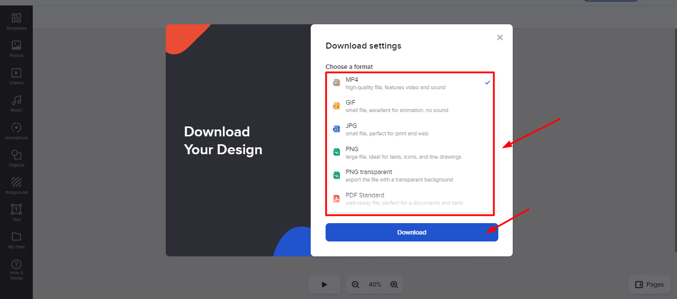 This also includes the Pexels and Pixabay libraries that are integrated into Canva’s editor to simplify your designing experience.