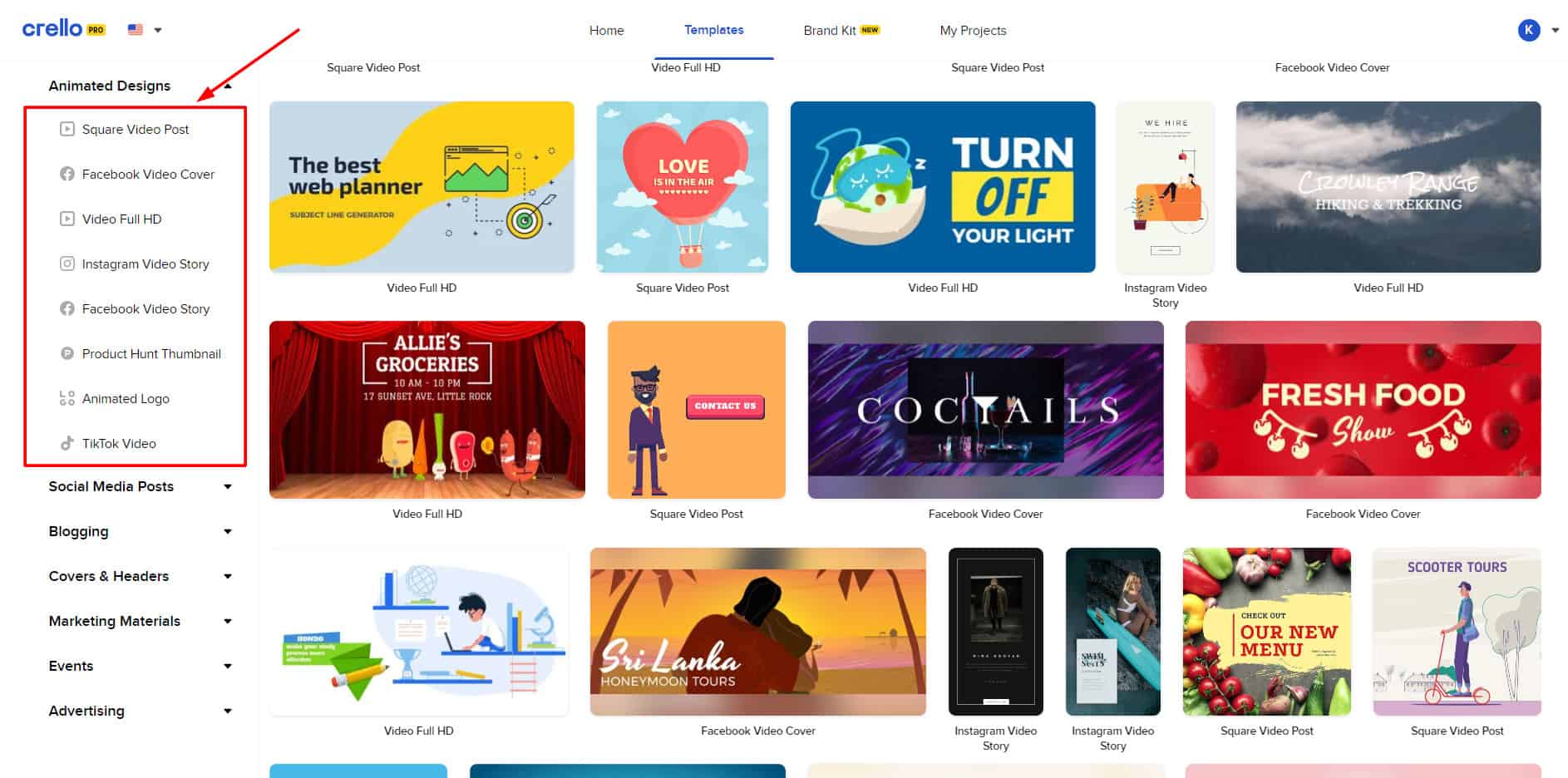 As discussed in the previous comparisons, Crello Pro features a library of 5.4k+ animated video templates covering lots of social media platforms.