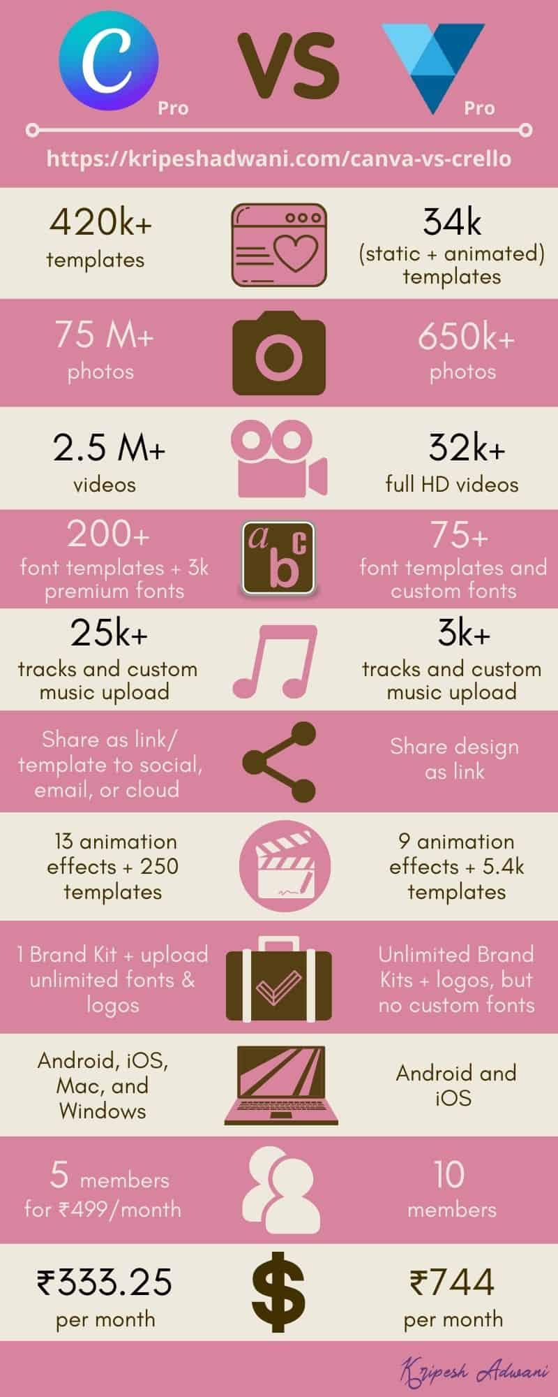 Canva Pro vs Crello Pro Infographic