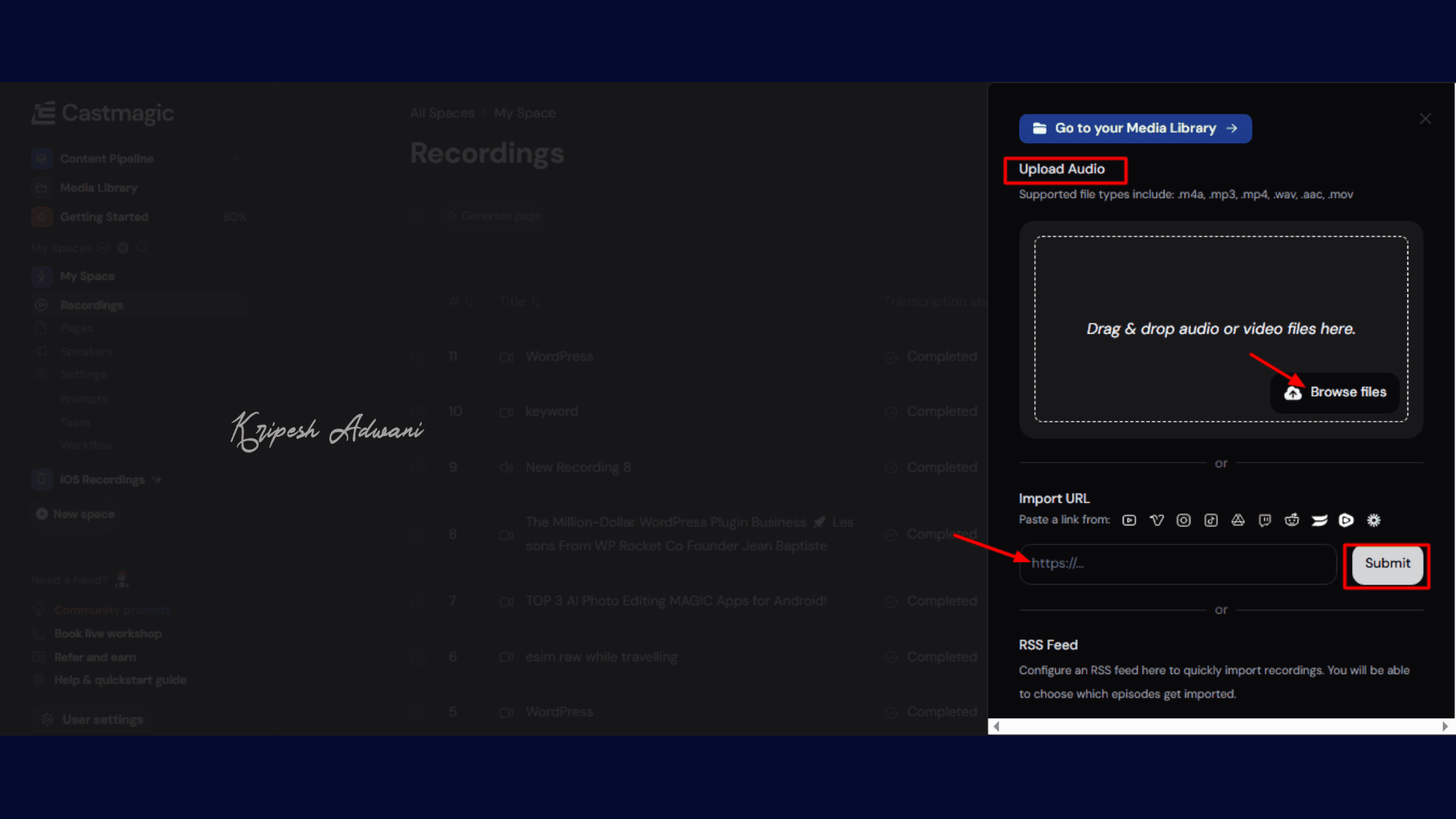 CastMagic previously supported YouTube link imports, alongside other platforms like Vimeo, Reels, and Loom. However, recent YouTube policy changes have discontinued this feature.