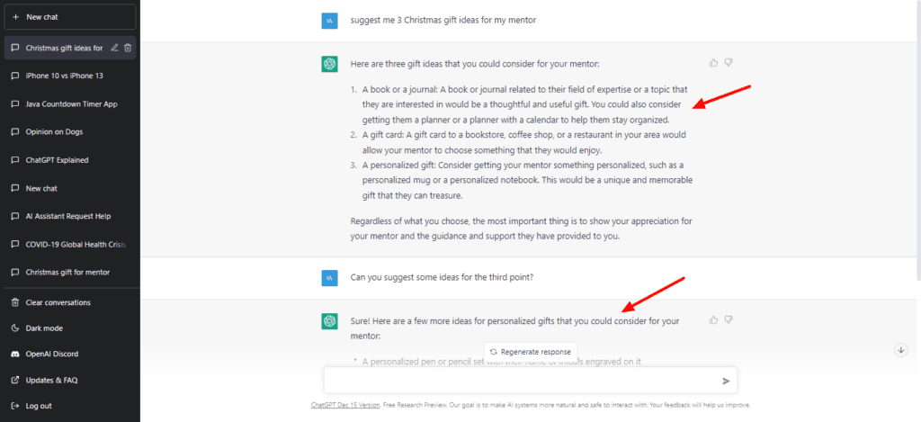 For instance, here are the results that ChatGPT produced when I asked it to suggest “Christmas gift ideas for my mentor”.