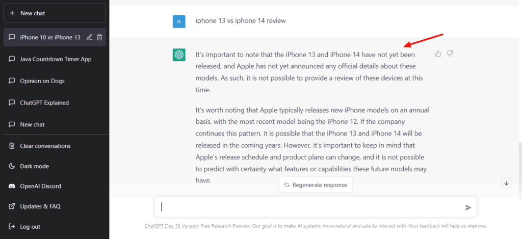 For instance, when asked for an iPhone 13 vs iPhone 14 Review, it didn’t produce any significant results.