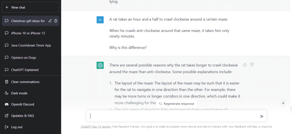 To test the accuracy of ChatGPT, I tested it with a mathematical riddle about rats. Take a look at it below.