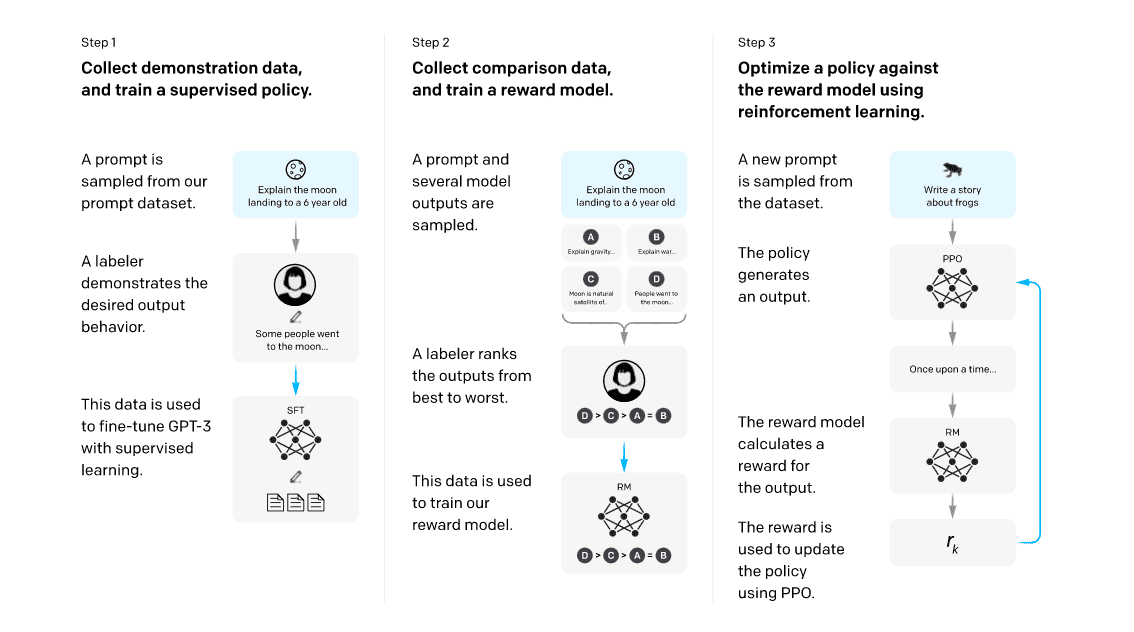 Apart from this, it is also trained using a special technique called Reinforcement Learning from Human Feedback (RLHF).