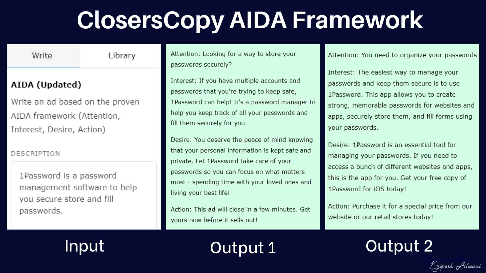What really impressed me with the generated results was the clear distinction between the different sections of the AIDA framework.