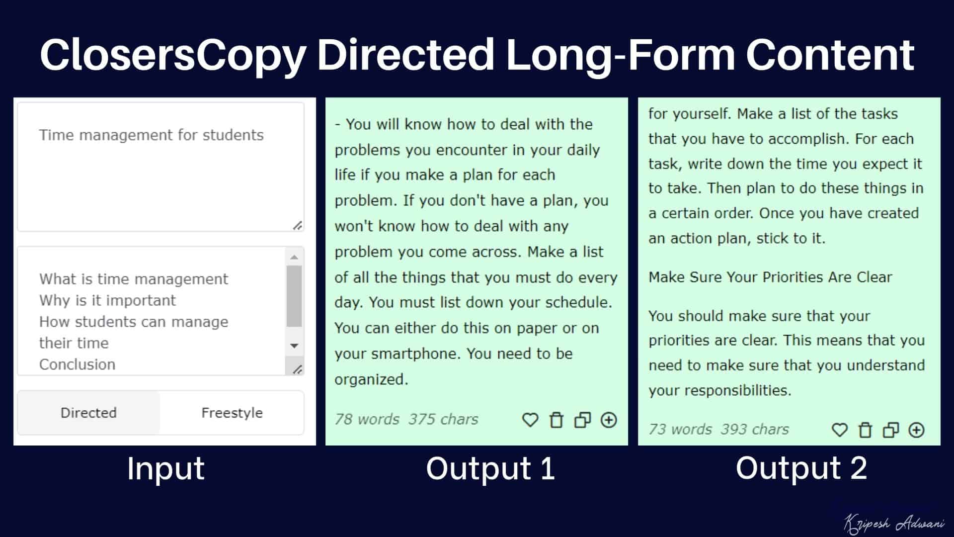 ClosersCopy offers three types of AI tools for generating long-form content. I personally found the long-form content generated using AI tools to be quite impressive. The Directed and Freestyle tools are average in quality.