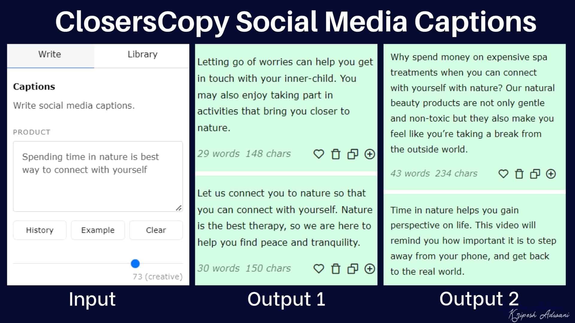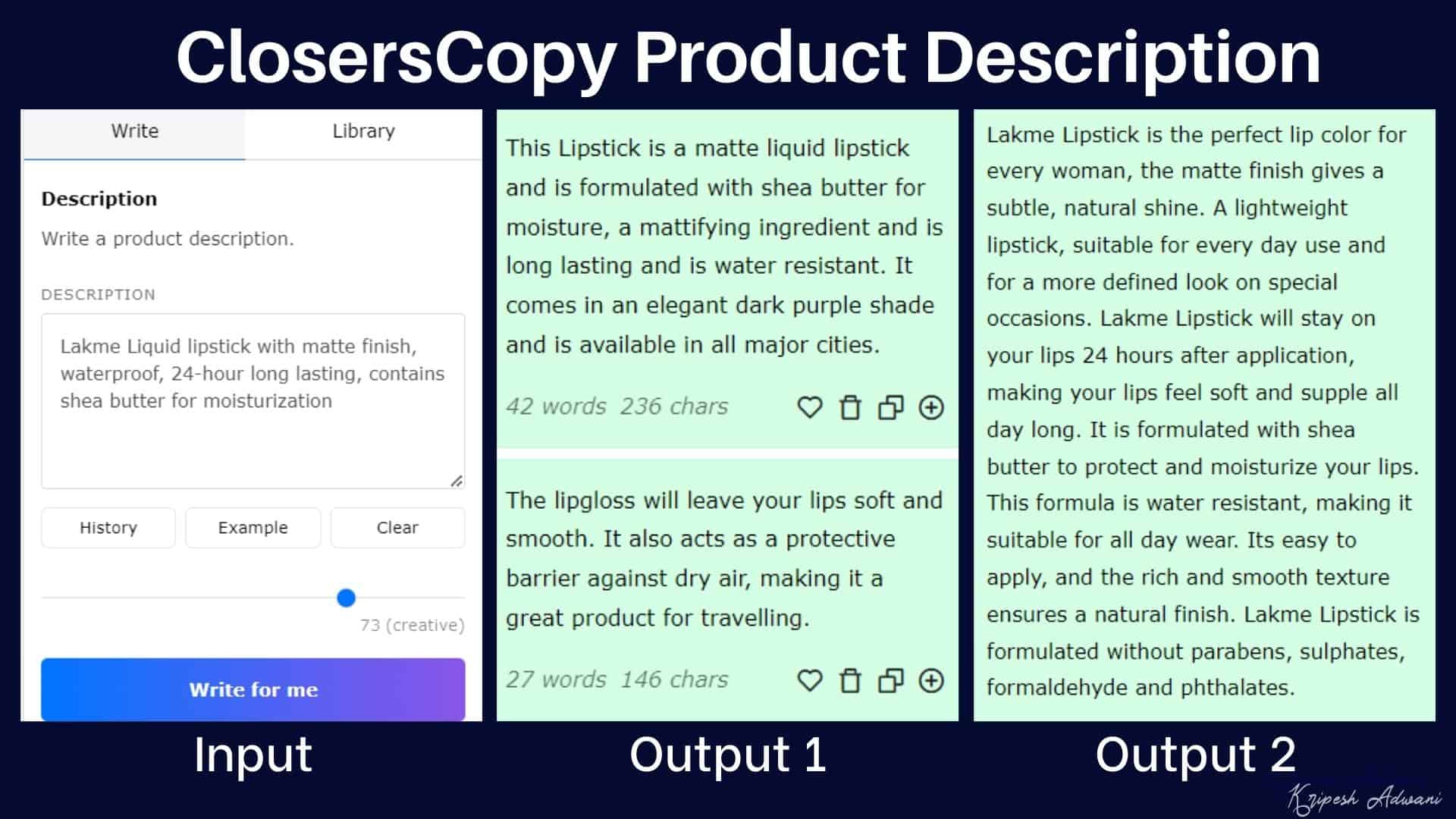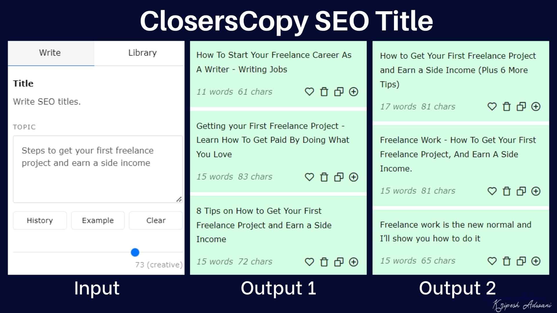 ClosersCopy has a unique algorithm that lets you set a creativity level on a scale of 1 to 100 on a slider bar. Using these features, you can get better and more refined results as per your use case.