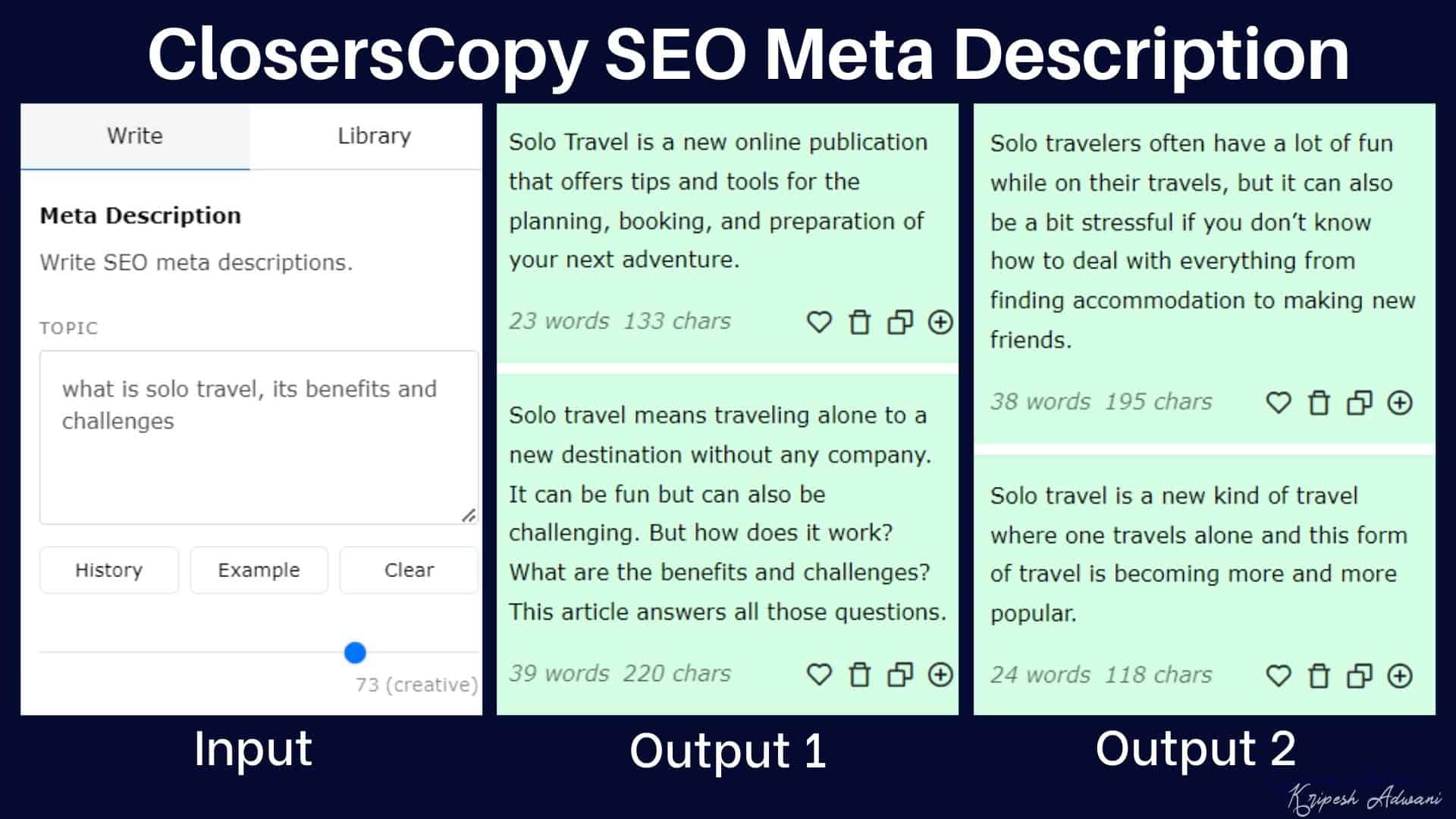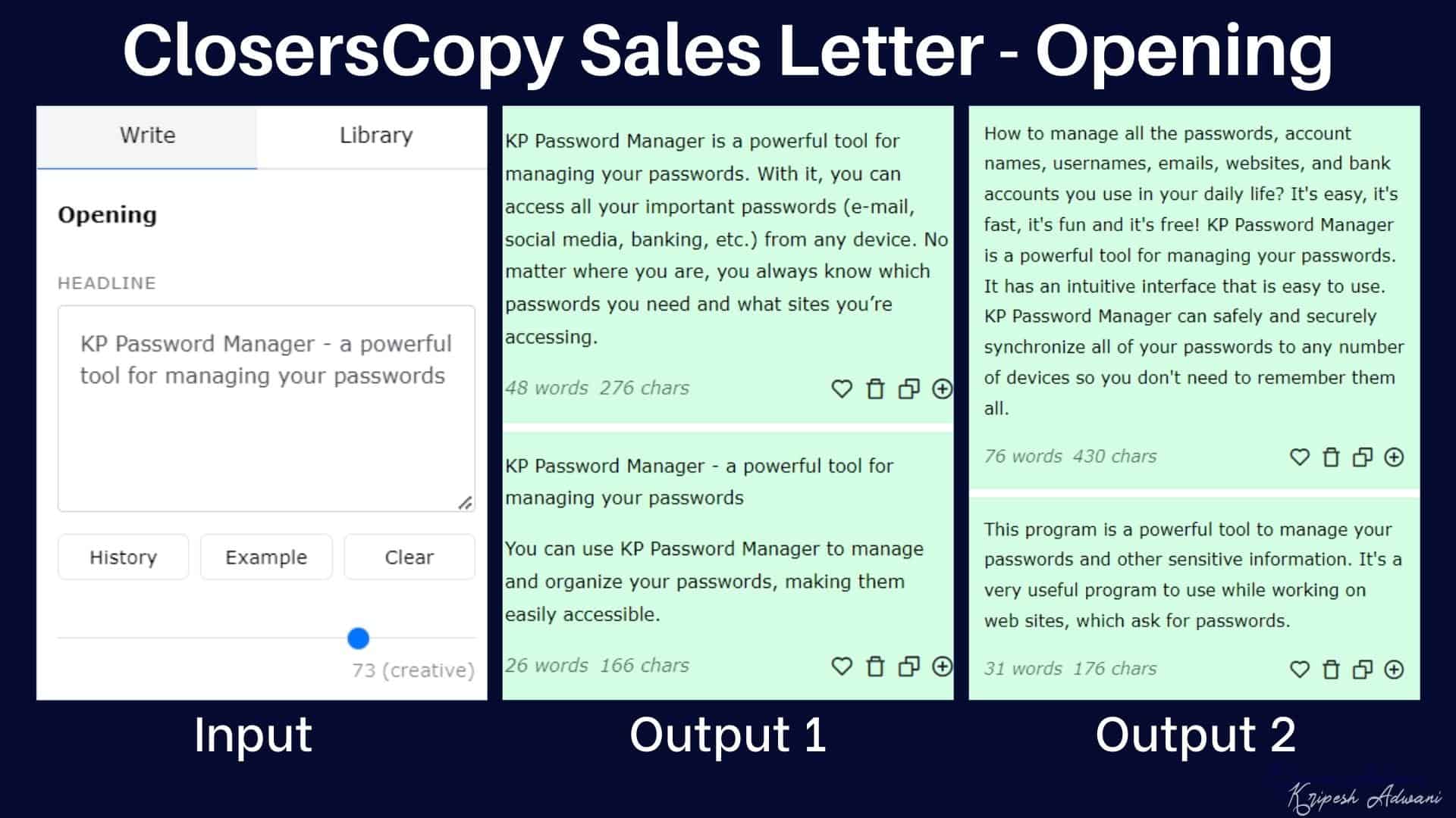 Are you fed up with writing the same old and repetitive content for your Google Ads? Well, ClosersCopy can help you generate fresh content. You need to provide a 1-line description of your product or service to get started.