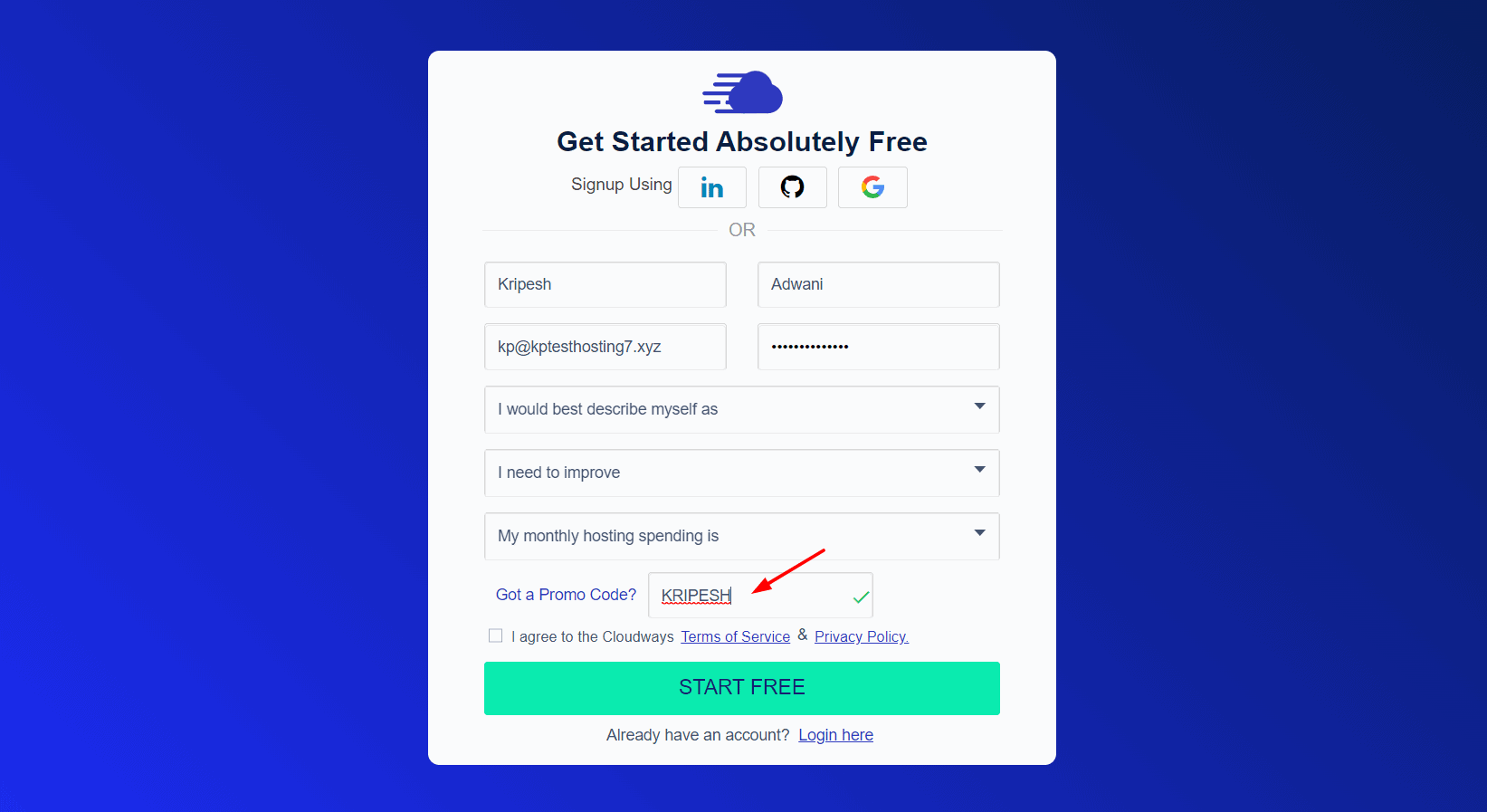 If you are interested in trying out Cloudways hosting, I have a special discount coupon for you. You can get a 20% discount on all hosting plans of Cloudways for the first three months, by using my coupon code KRIPESH at checkout.