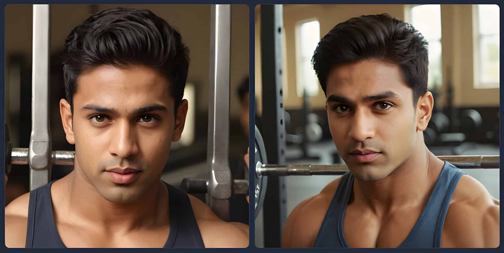 “An Indian guy with a light skin tone. Good-looking face, good-looking eyes, good hairstyle. He should look like a fitness model lifting weights in the gym.”