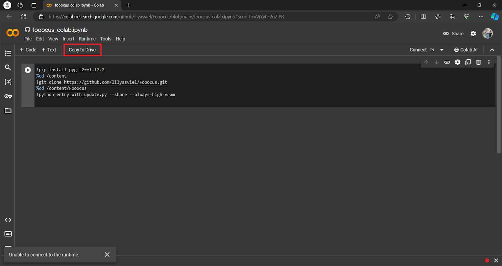 To start working with Fooocus, we will have to copy Fooocus to our Google Drive and execute it.