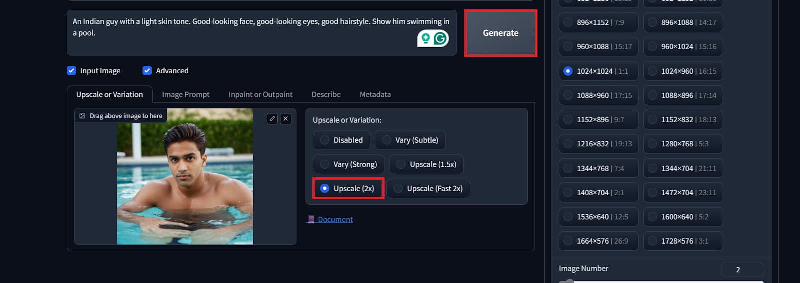 - To upscale the image, select the Upscale (2x) option and click on Generate. It will enhance your image to twice the original quality. The upscaled image will look something like this.