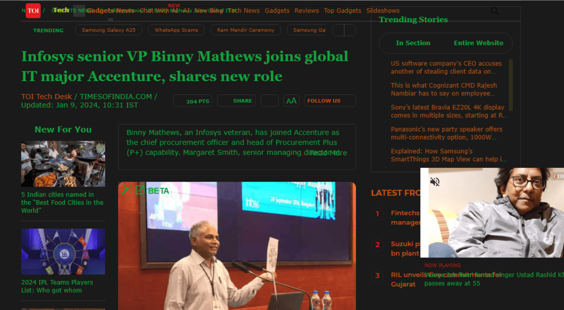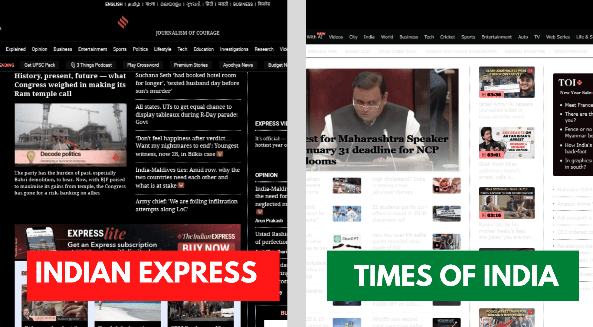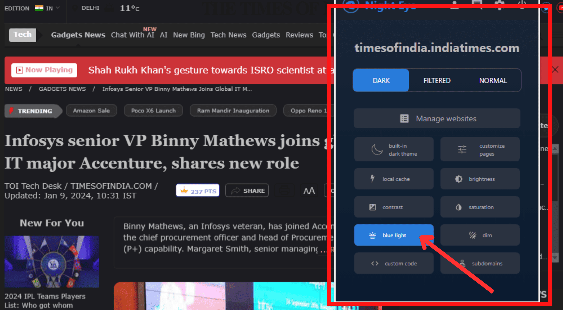 However, one issue I noticed during testing is that the module doesn’t work on all websites seamlessly. For instance, as shown in the image above, the home page appears differently for Indian Express and Times of India. It doesn’t completely turn the Times of India page black.