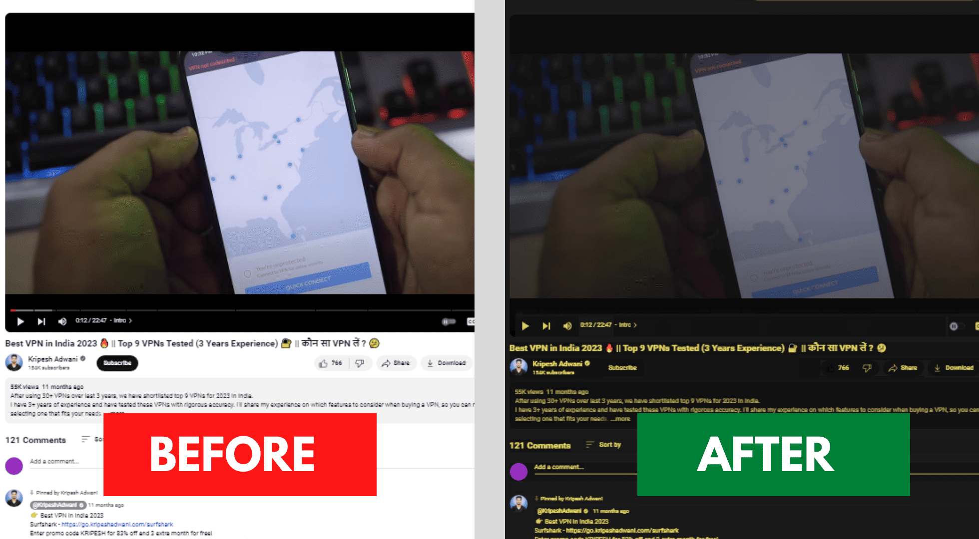 To assess dark mode extensions, I installed each one and tested their performance across four used website categories: LinkedIn (social media), YouTube (entertainment), Times of India (news platform), and Amazon (e-commerce site).