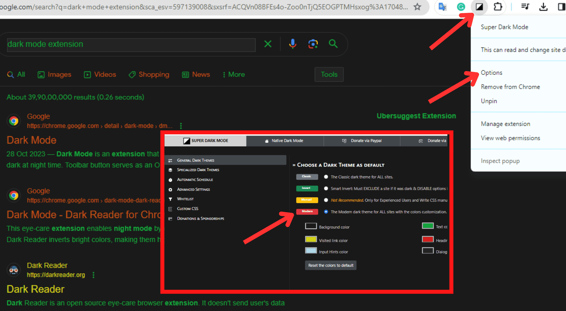 Super Dark Mode is like a magic wand for your entire browser! With 400,000 users, it’s a super popular extension for Google Chrome that turns those eye-straining web pages into eye-soothing backgrounds. You can say it’s not just your average dark mode. Alongside with usual customization options, it offers some extra features.