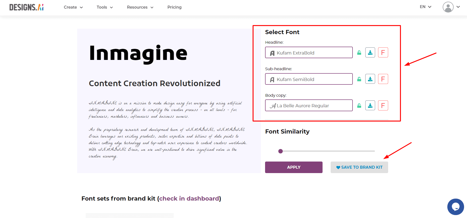 • Font Pairer and Color Matcher offer intelligent suggestions on what fonts and colors go well together.