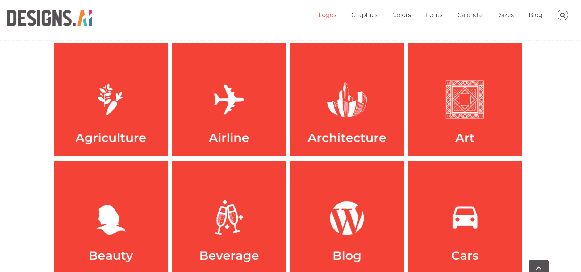 To help creatives, they offer an Inspire page where you can find loads of logo designing ideas in various categories.