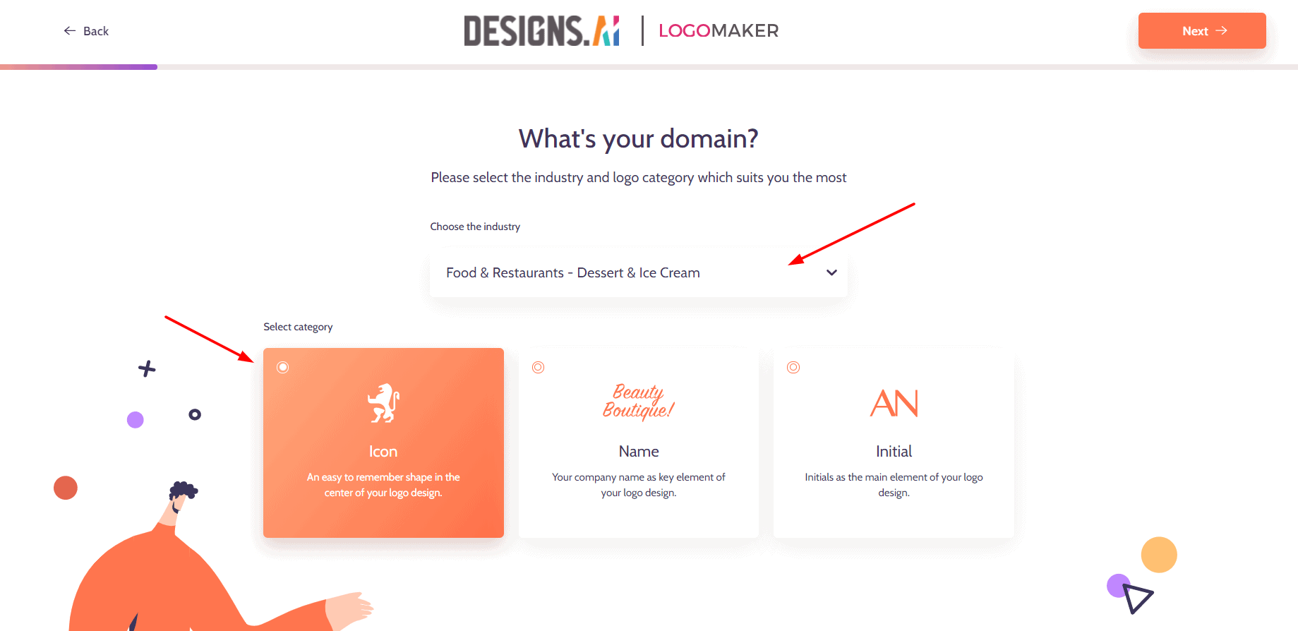 The Logo Maker tool of Designs.ai improves the creative process by auto-generating a variety of templates based on your selections.
