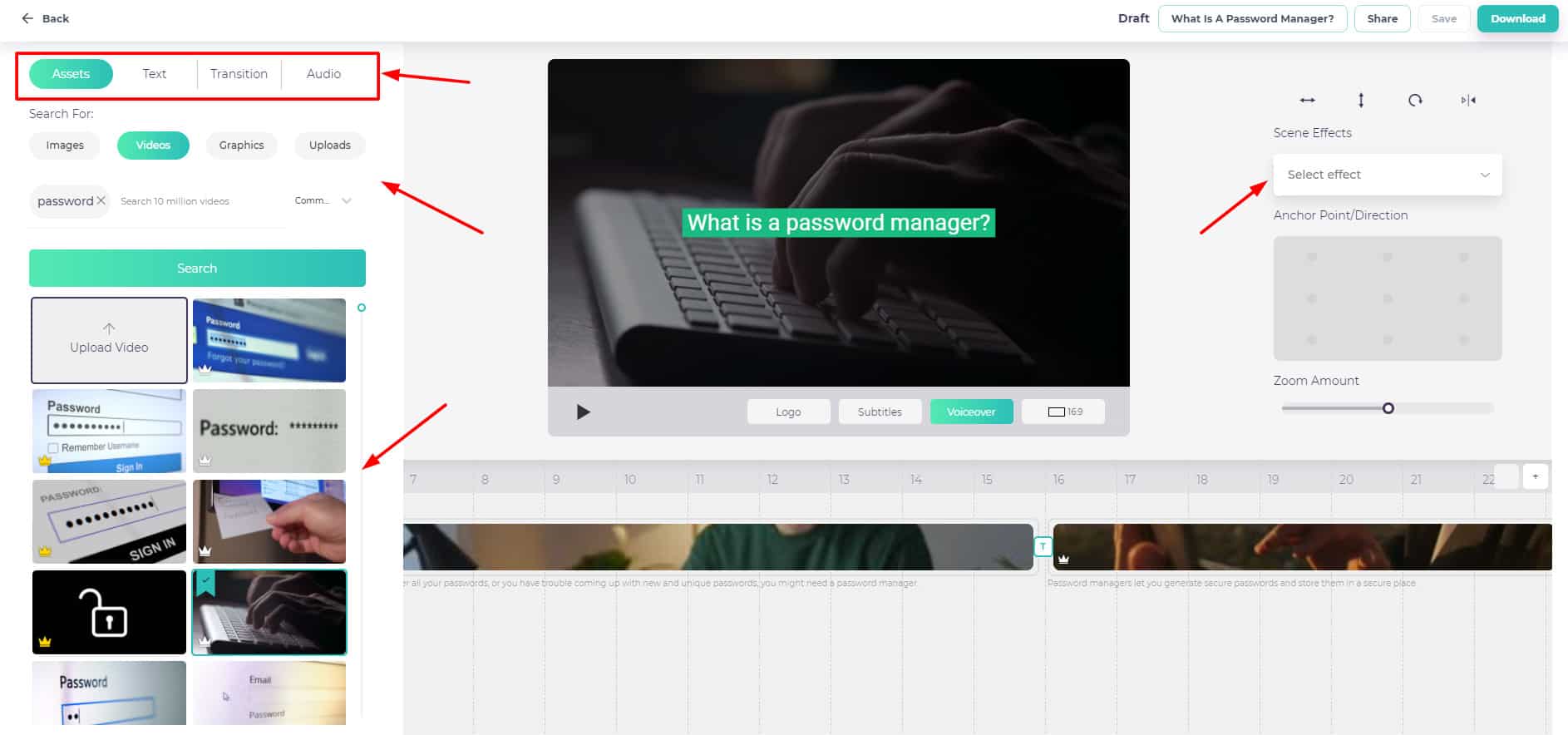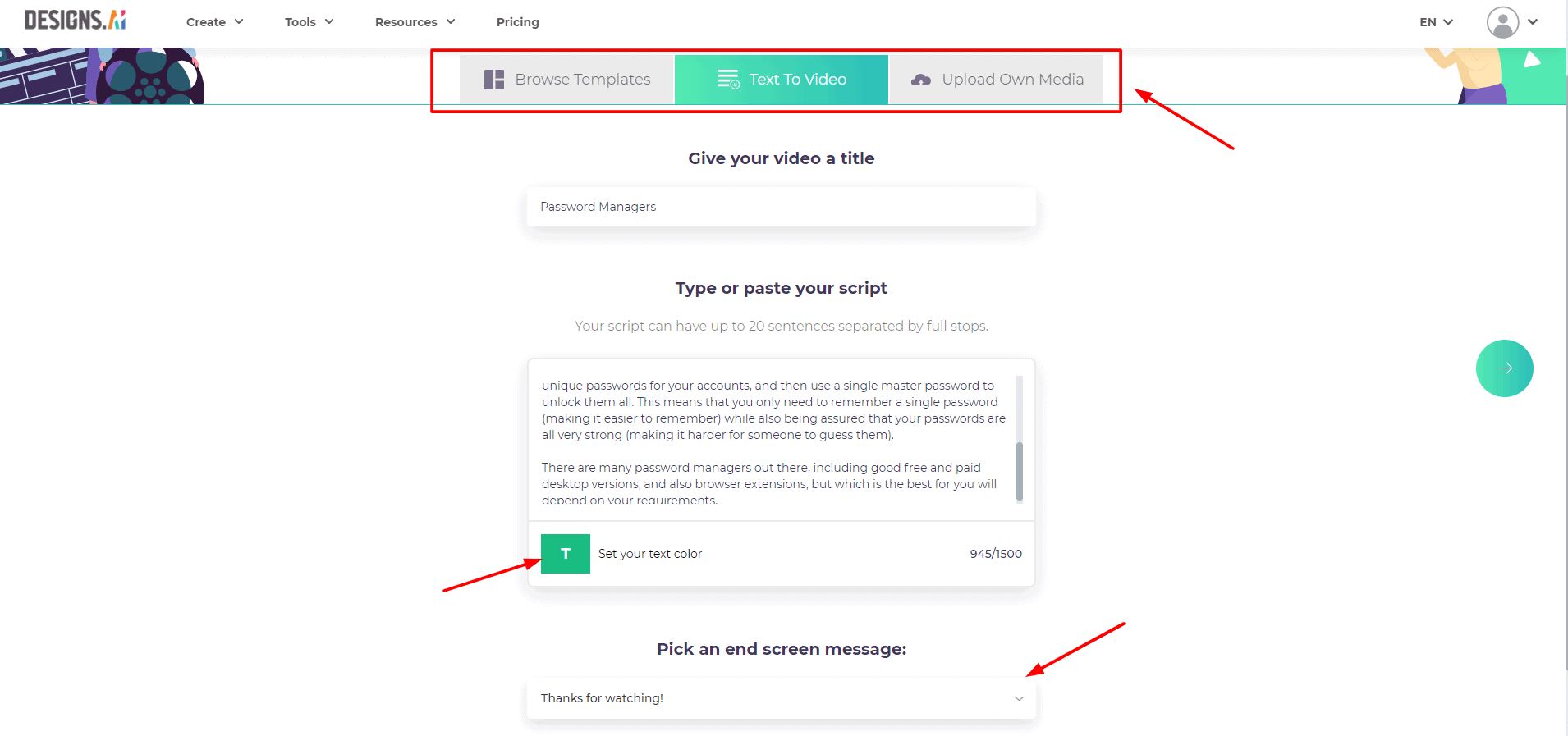 That’s all! Designs.ai will automatically analyse the content and find relevant video footage to pair with the text.