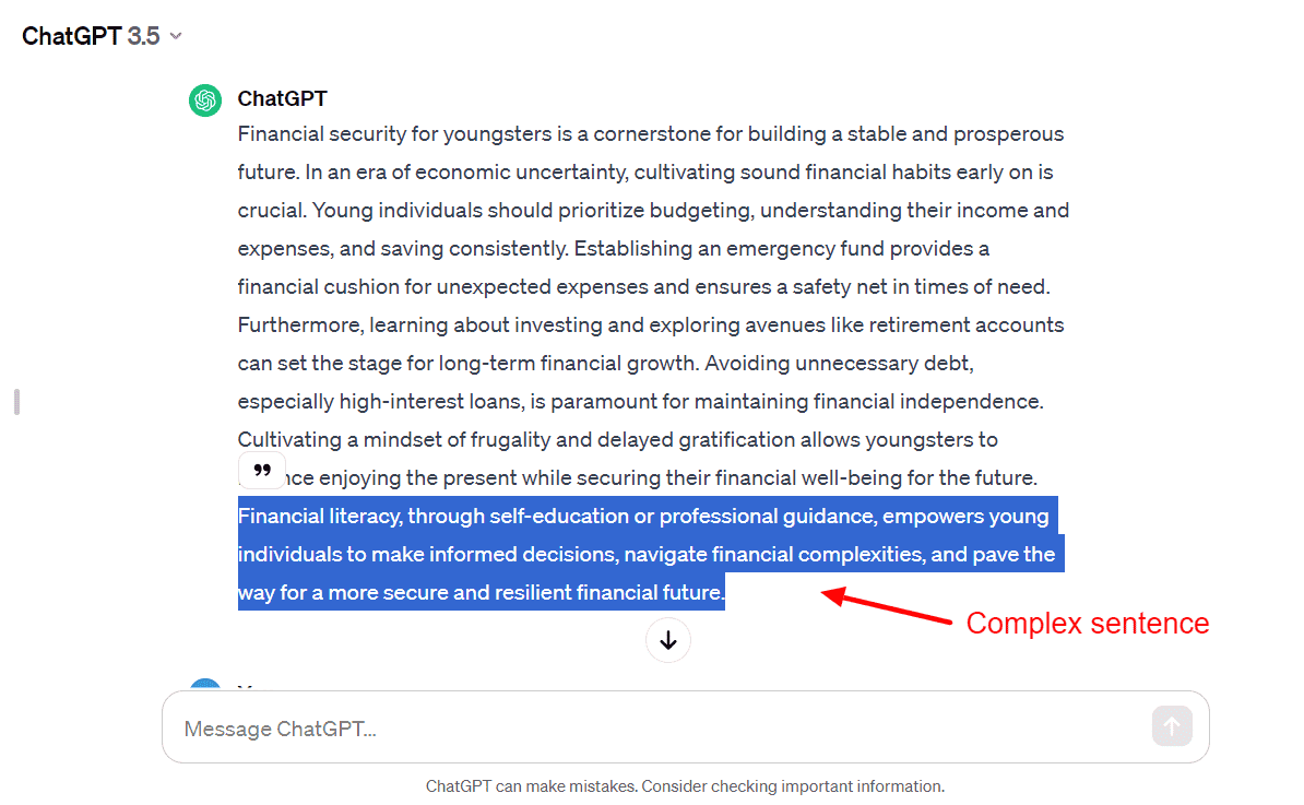 However, if you look at AI generation tools like ChatGPT, you’ll notice that they produce unbelievably long and complex sentences for most use cases. To fix this, you can try experimenting with your sentence length.