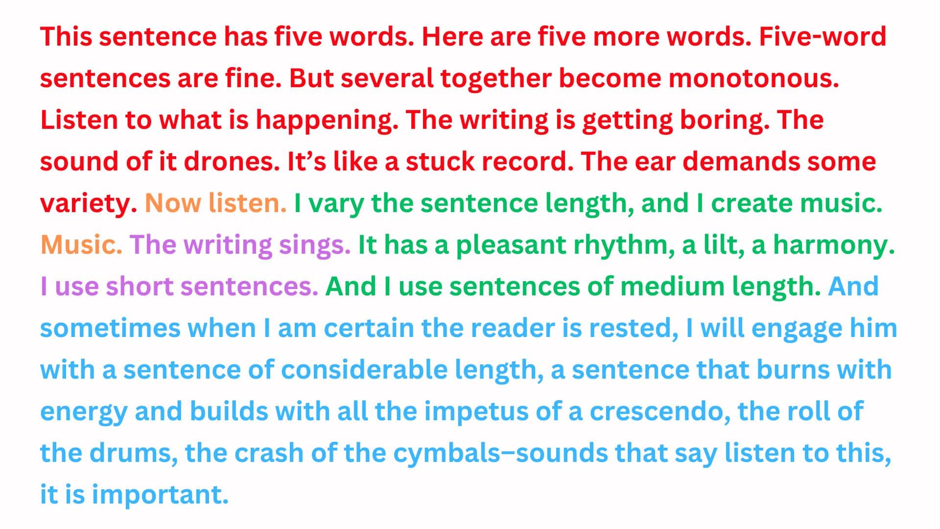 It may help you write sentences with varying lengths to keep the reader engaged throughout!