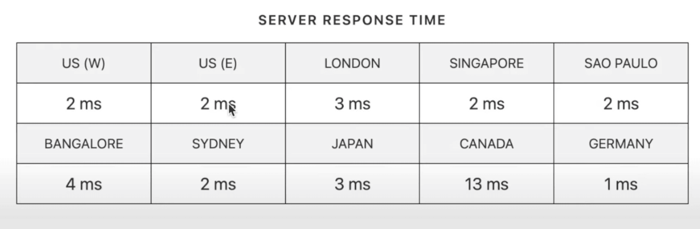 Server Response Time is the time taken by the first byte of data to reach the user after they request to load a web page. I tested the SRT of Elementor hosting from multiple locations. In countries like US, London, Singapore, Sao Paulo, and Sydney, the SRT was merely 2 ms.