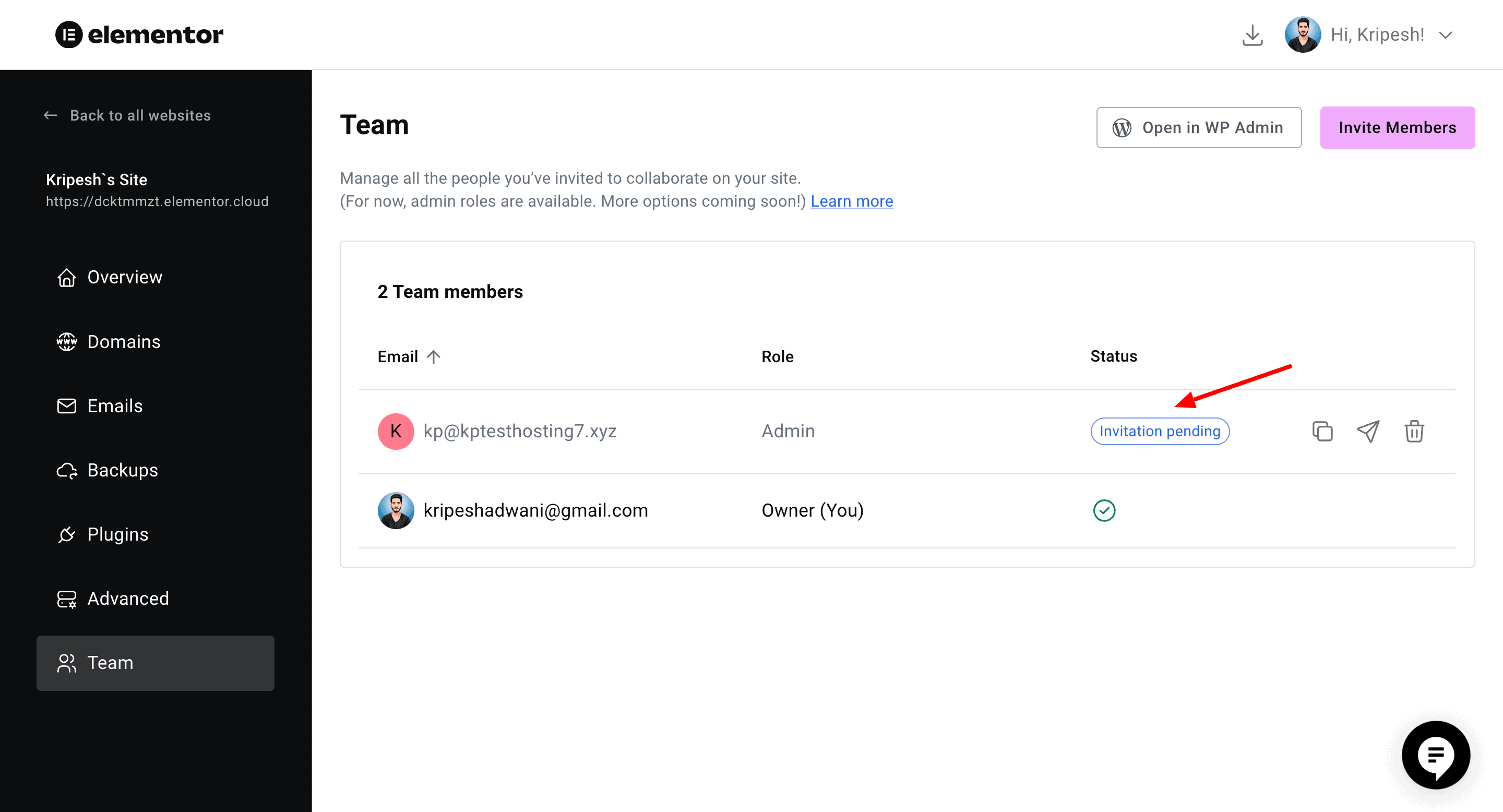 If you have a team of users, you can use the Team feature of Elementor hosting to collaborate with them. It lets you invite anyone to become an admin on your account. You can also allow admins to edit, manage, or publish website content with ease.