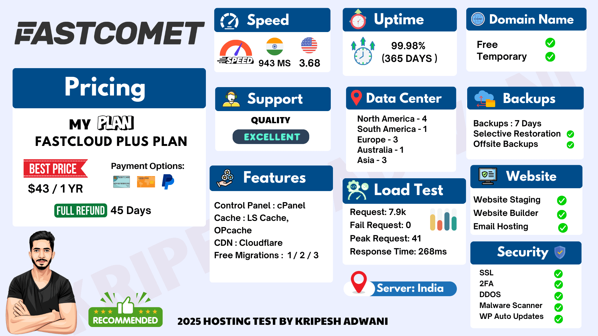 In this FastComet Review, we will begin by conducting various tests- speed test, load test, uptime test, SRT test, etc, and evaluate the performance of FastComet.