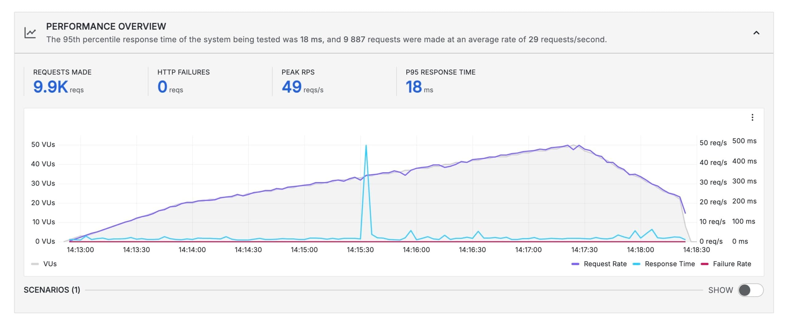 Even with many requests, FastComet maintained a stable response time with very few spikes and no request failures. So, overall, it handles load efficiently.