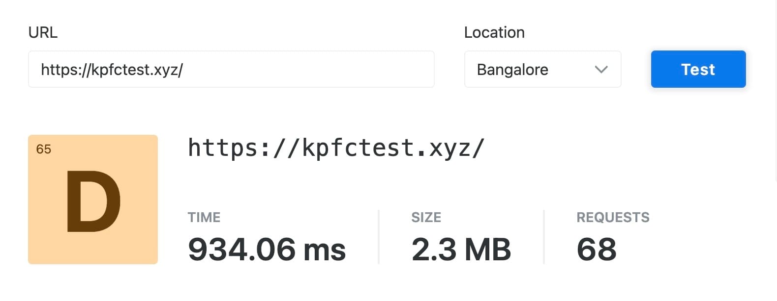 Upon testing my website from the Indian location, I noticed swift speeds of merely 934 ms.