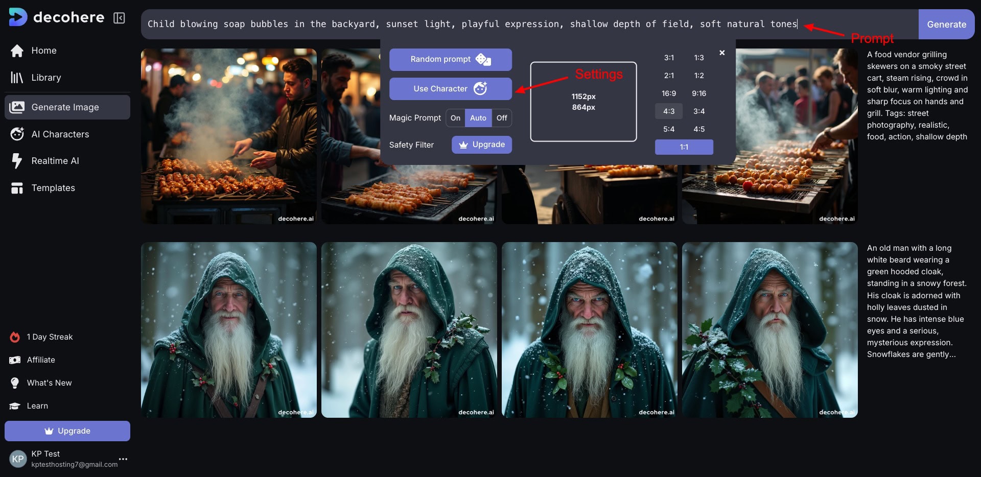 Decohere is an image and video generation platform powered by AI. To start, simply go to the โGenerate Imageโ tab and enter your prompt. You can also specify image dimensions and enable or disable the magic prompt.