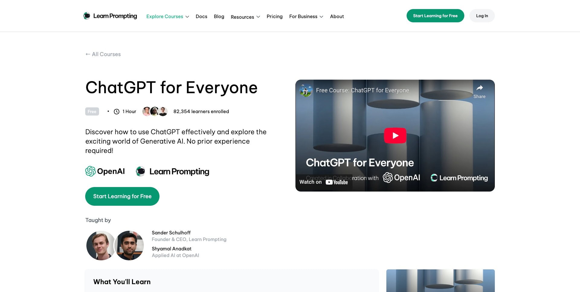 | ChatGPT for Everyone | Learn Prompting | Beginner | 1 hour | Free |