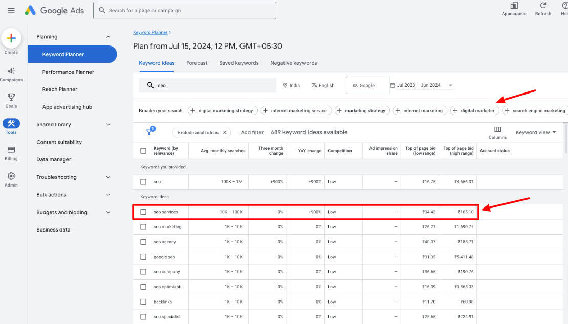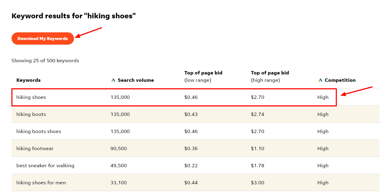 The best part about using Google Keyword Planner is that it does not restrict your queries or limit the search results. It will show you all the keywords related to the term that you enter.