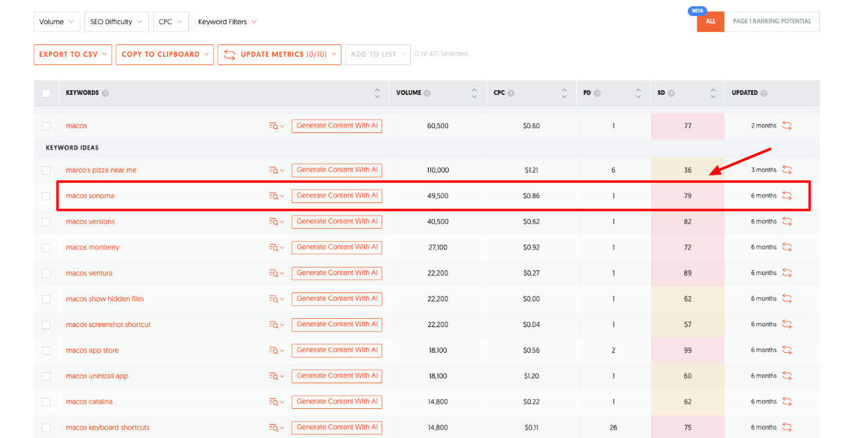 By performing keyword research and including relevant keywords in your content, you can improve your chances of ranking higher on the SERP. A proven method to improve your search visibility is to target easy-to-rank keywords with good search volume.