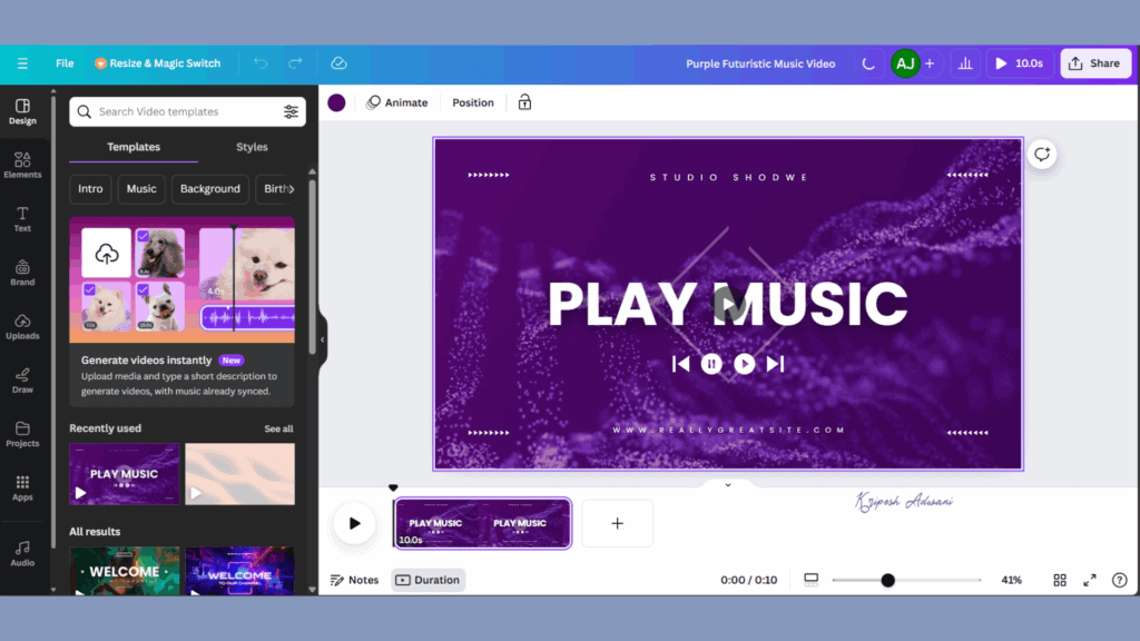 A notable feature is Beat Sync, a tool that automatically synchronizes video cuts and transitions to the music tempo. Magic Studio is another amazing feature of Canva, where all advanced animations and AI-powered tools are available, though this is part of the paid subscription.