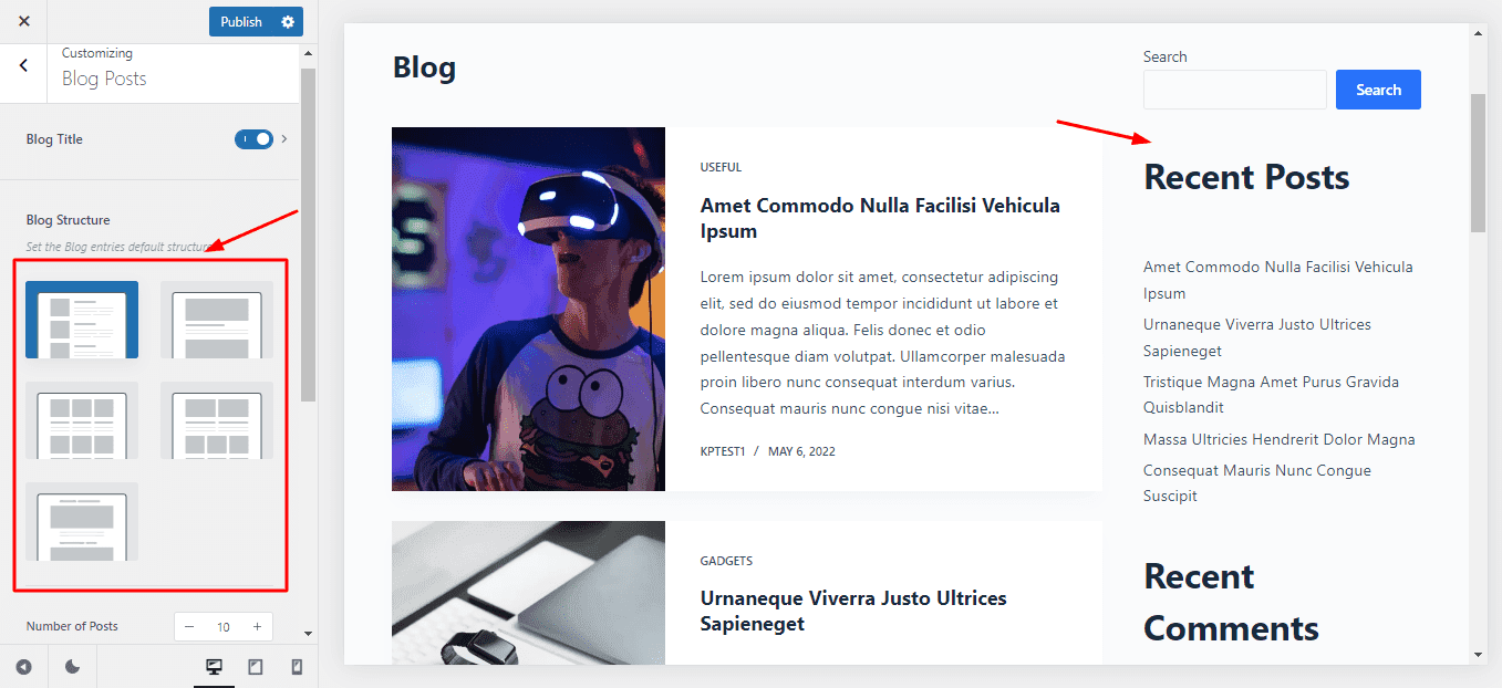 The Blog customization options in Phlox are commendable. You get 7 impressive blog sidebar layouts, 3 styling options, along with 3 content styles.