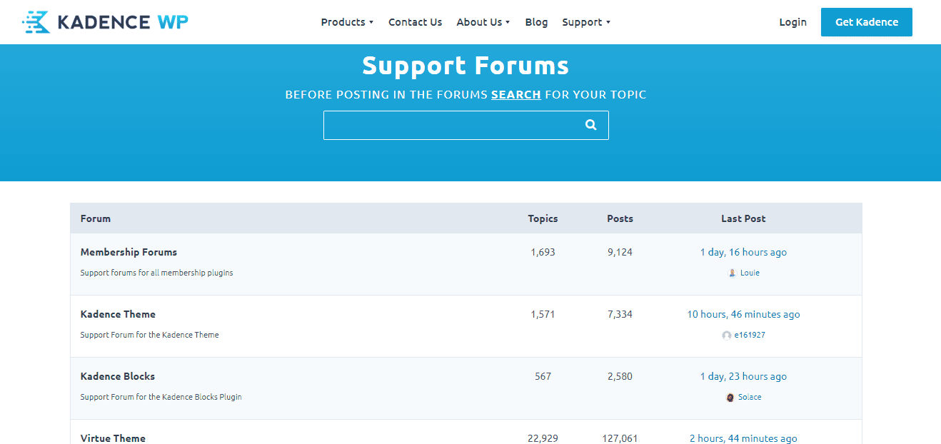Kadence theme has the best customer support because of its active community support forum, that is updated on a regular basis.