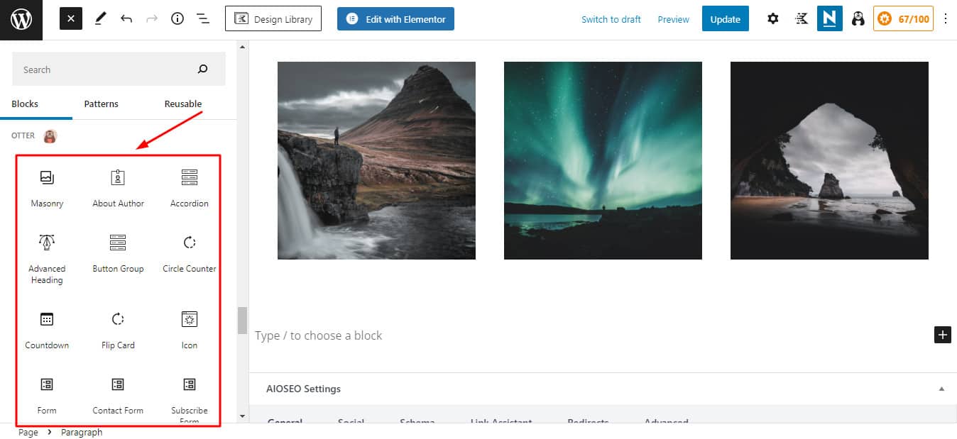 While editing your posts in the Elementor editor, you can use from their 45+ free elements to give your website a modern design.