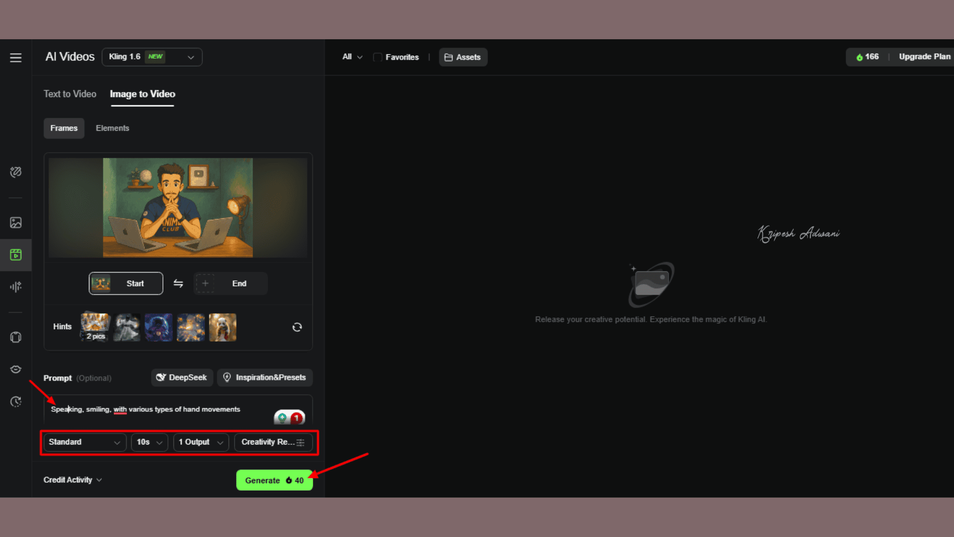 Kling AI is another powerful AI image-to-video generator. With this tool, you can create videos up to 10 seconds long, add audio, generate AI sounds, and more. You’ll receive 166 AI credits upon signing up. The tool requires 40 credits to generate a video and 10 credits for lip sync.