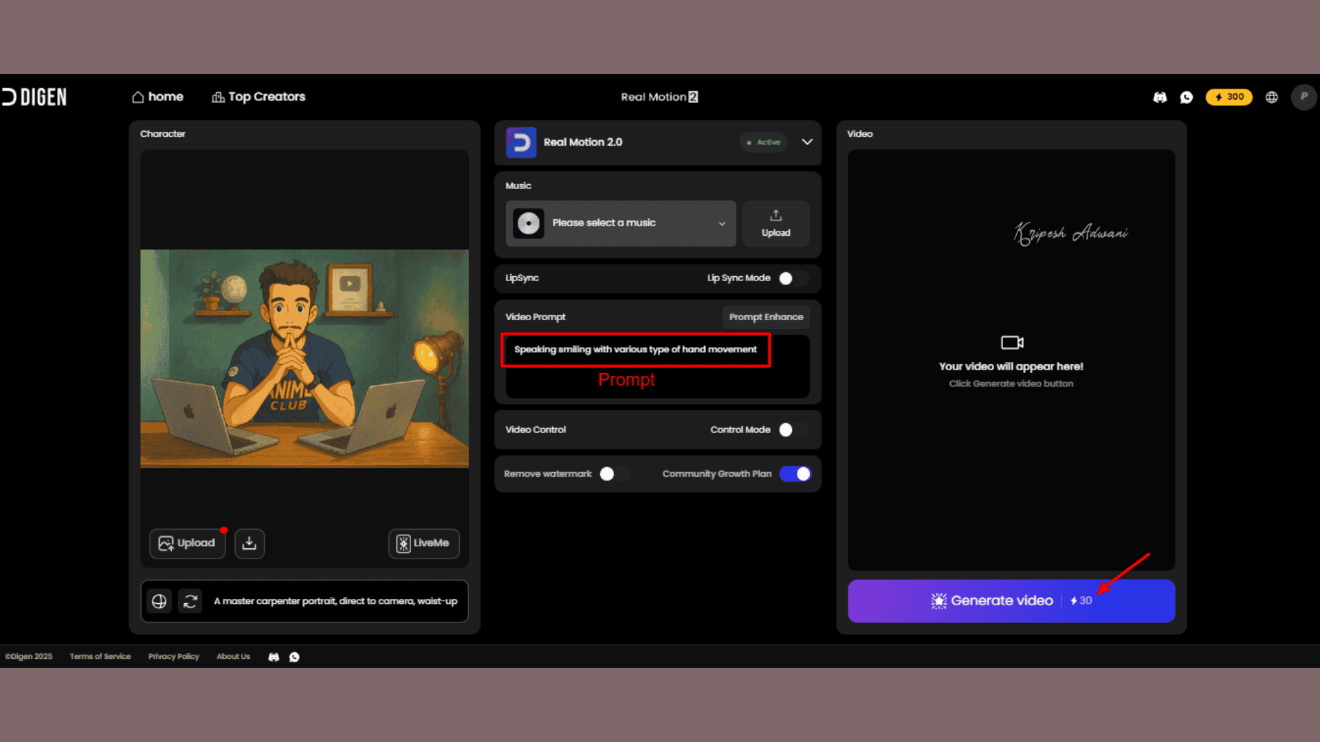 Enter a prompt describing how you want your animated video to look. Then, click “Generate Video”. Since DigenAI is a free tool, the process may take some time—so be patient!