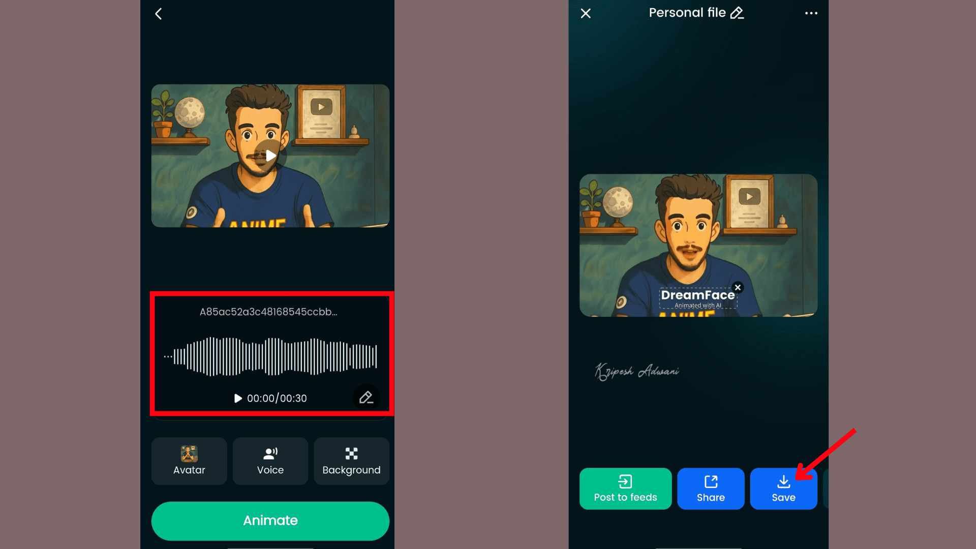 Tap “Animate” and wait for the process to complete. Once done, click “Save”, and voilà—your animated video is ready!