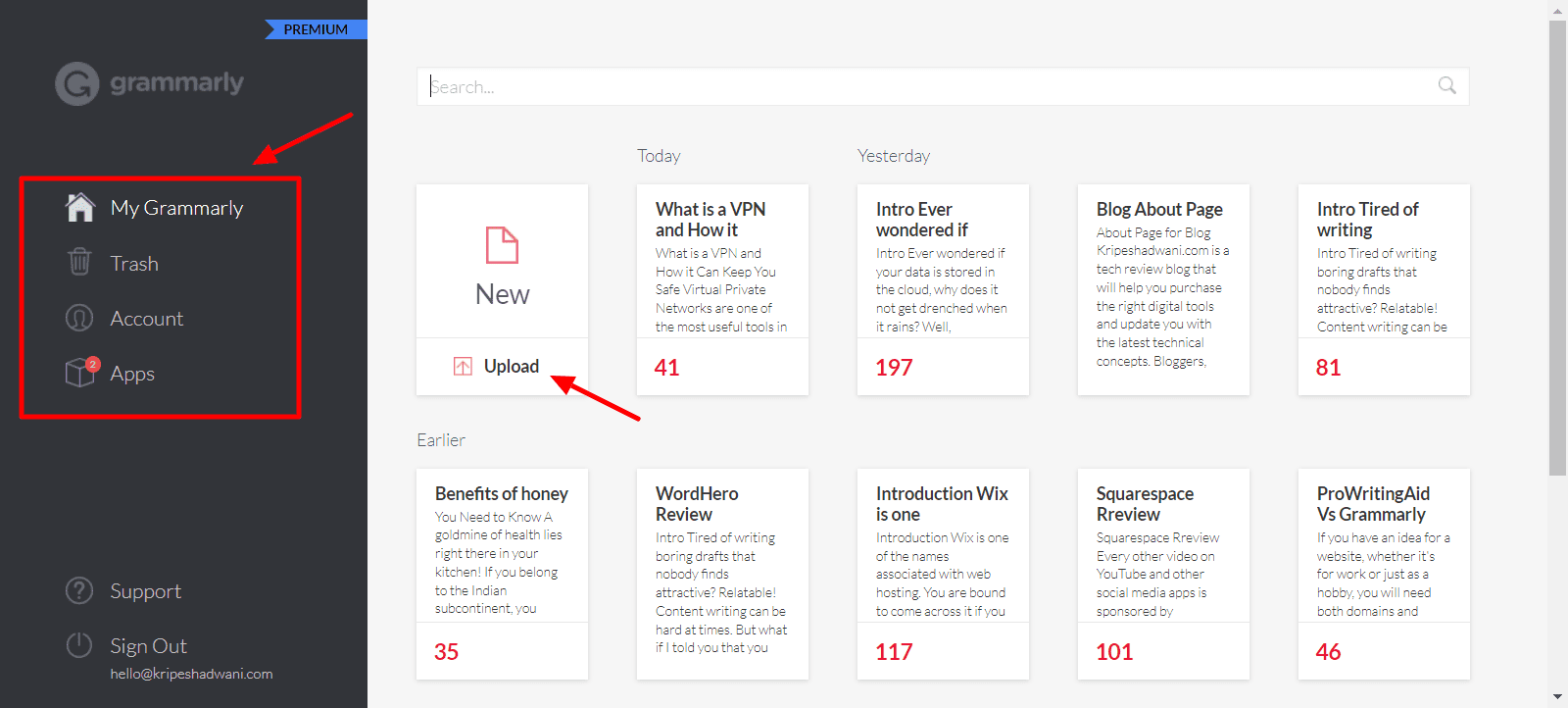 The user interface of Grammarly is modern and elegant. All the options and settings are neatly arranged on the left sidebar. The main screen comprises a list of your edited documents.