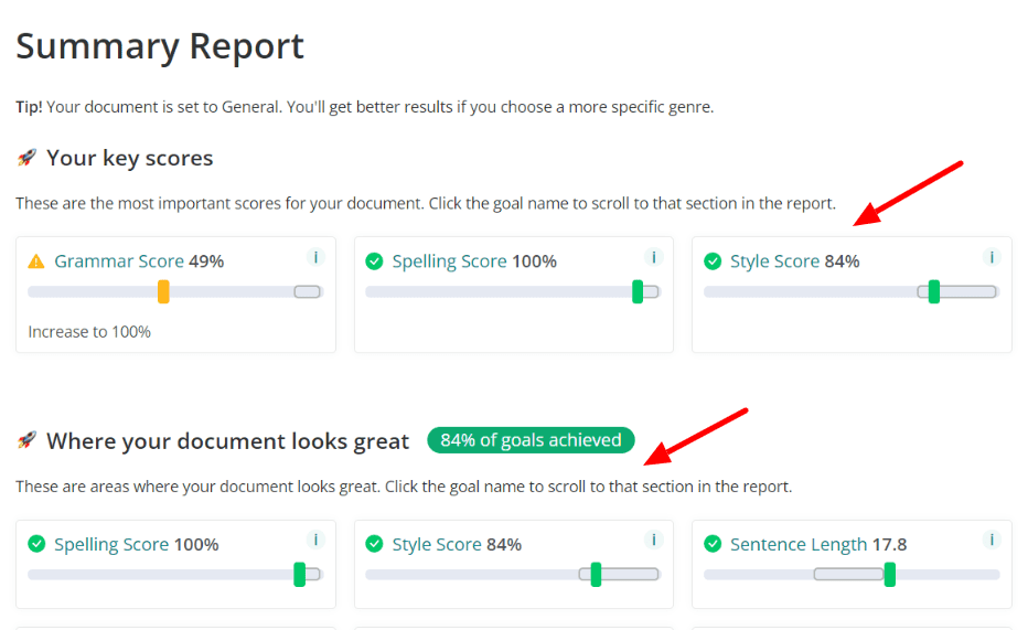 - Metrics where your document can be improved.