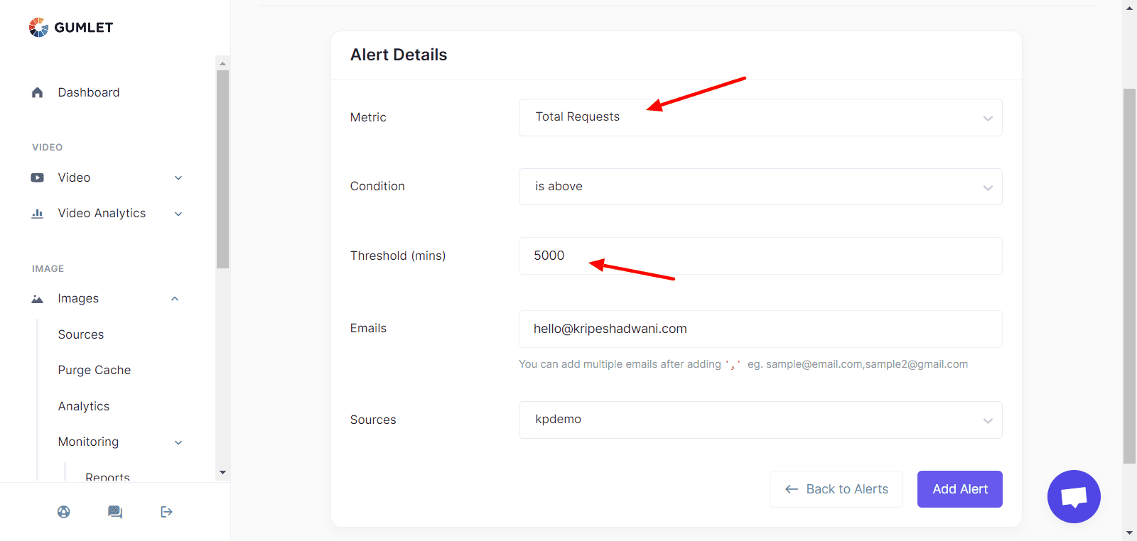 For instance, you can set an alert to be notified when the streaming minutes cross 5000 mins.
