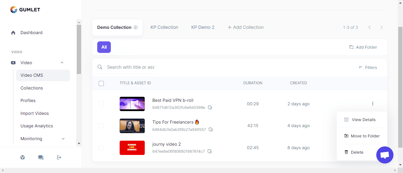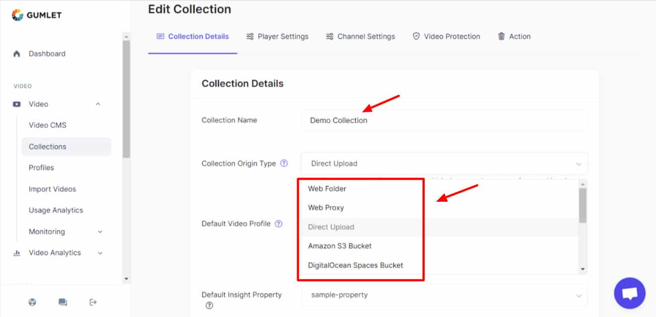 First, we will log in to our Gumlet account and create a New Collection under the Video tab.