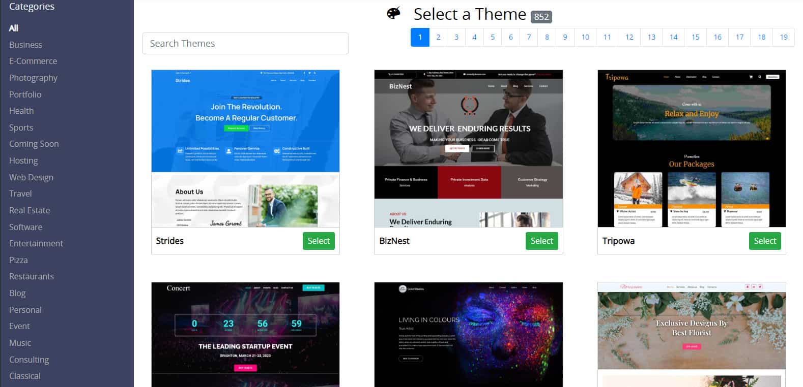 SitePad comes with an extensive library of 500+ website templates covering a wide range of categories. These include portfolio sites, blogs, business sites, travel sites, personal sites, and more.
