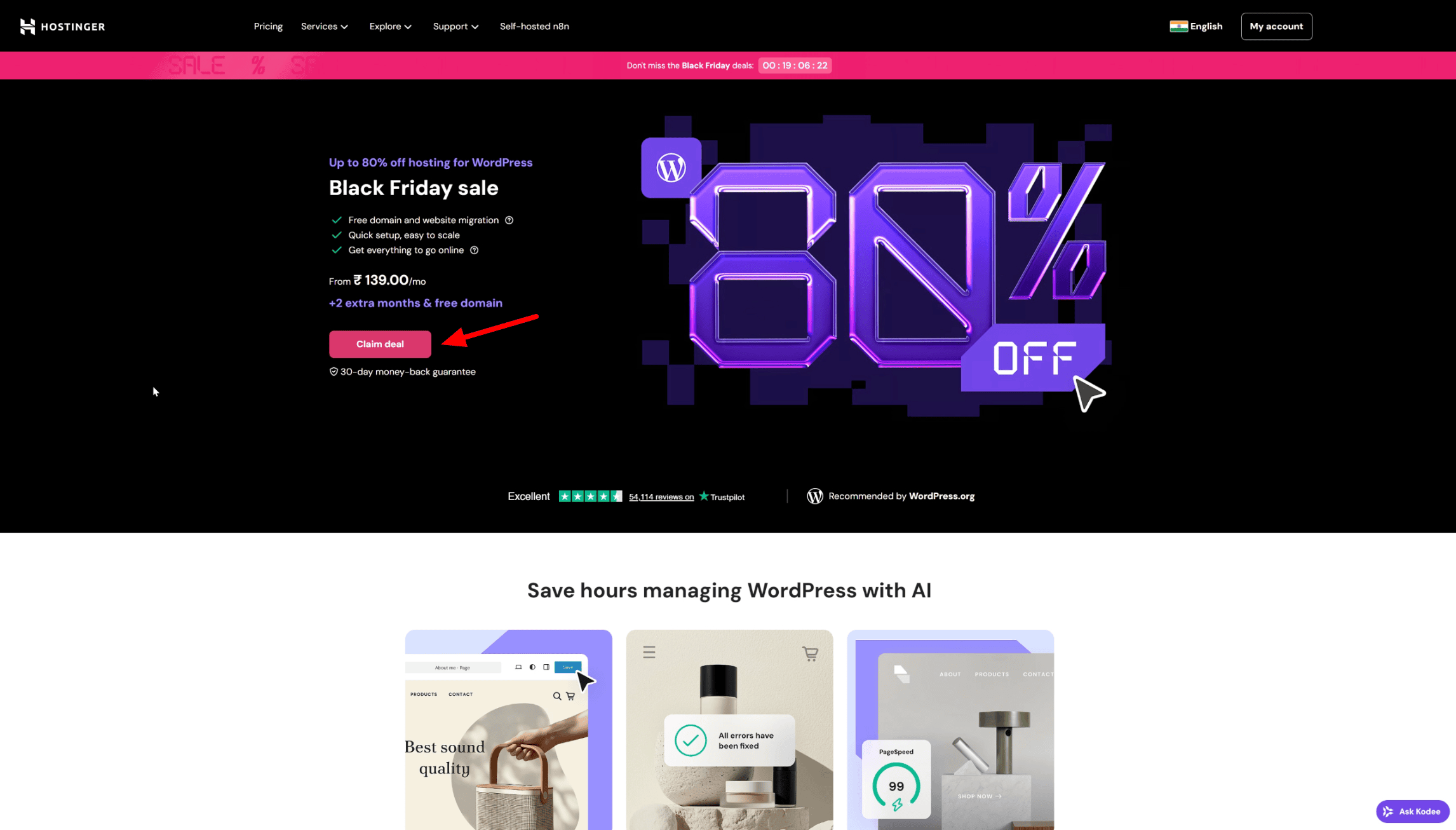 Hostinger has announced its Black Friday Deal, where you can get up to 80% + 10-20% extra discount on its hosting and website builder! You’ll also get a free domain and SSL certificate, free website migration, and 24/7 customer support with your purchase.