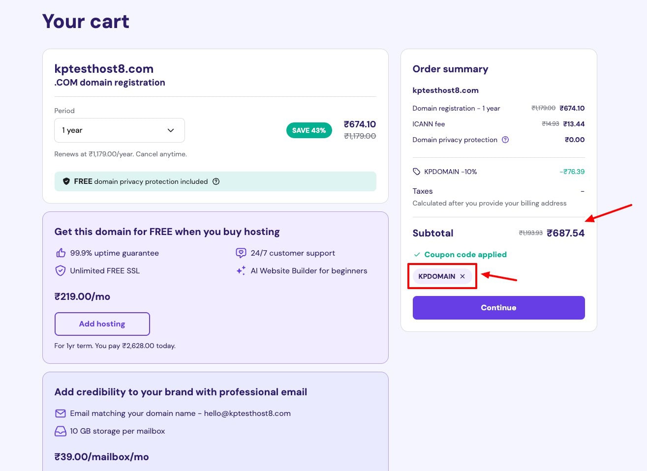 Planning to get a domain name from Hostinger? I’ve got some good news. If you purchase your domain name using my exclusive coupon code, you can avail of exciting discounts. Just enter the coupon code KPDOMAIN, and get an instant 10% off!