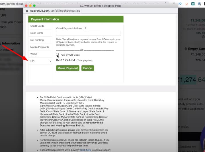 But GoDaddy has Indian payment options which include payment through debit card and UPI payment method.
