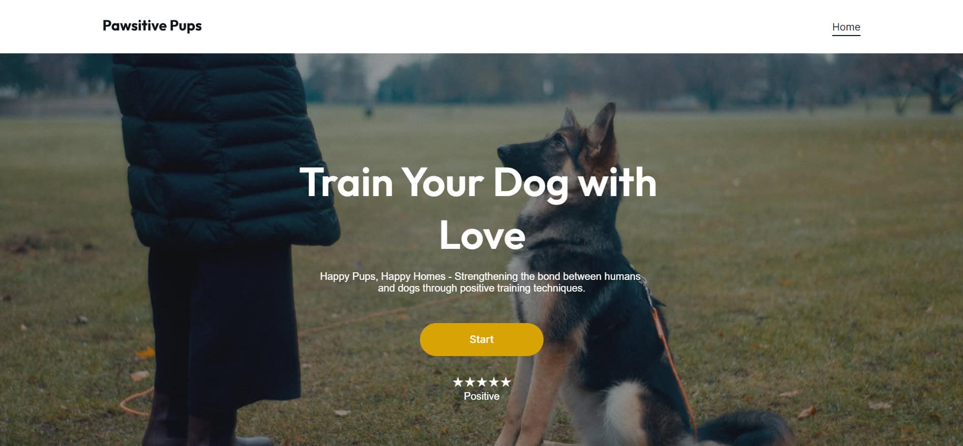 A strong call to action like “Start Training Today” encourages visitors to invest in their furry friend’s happiness.